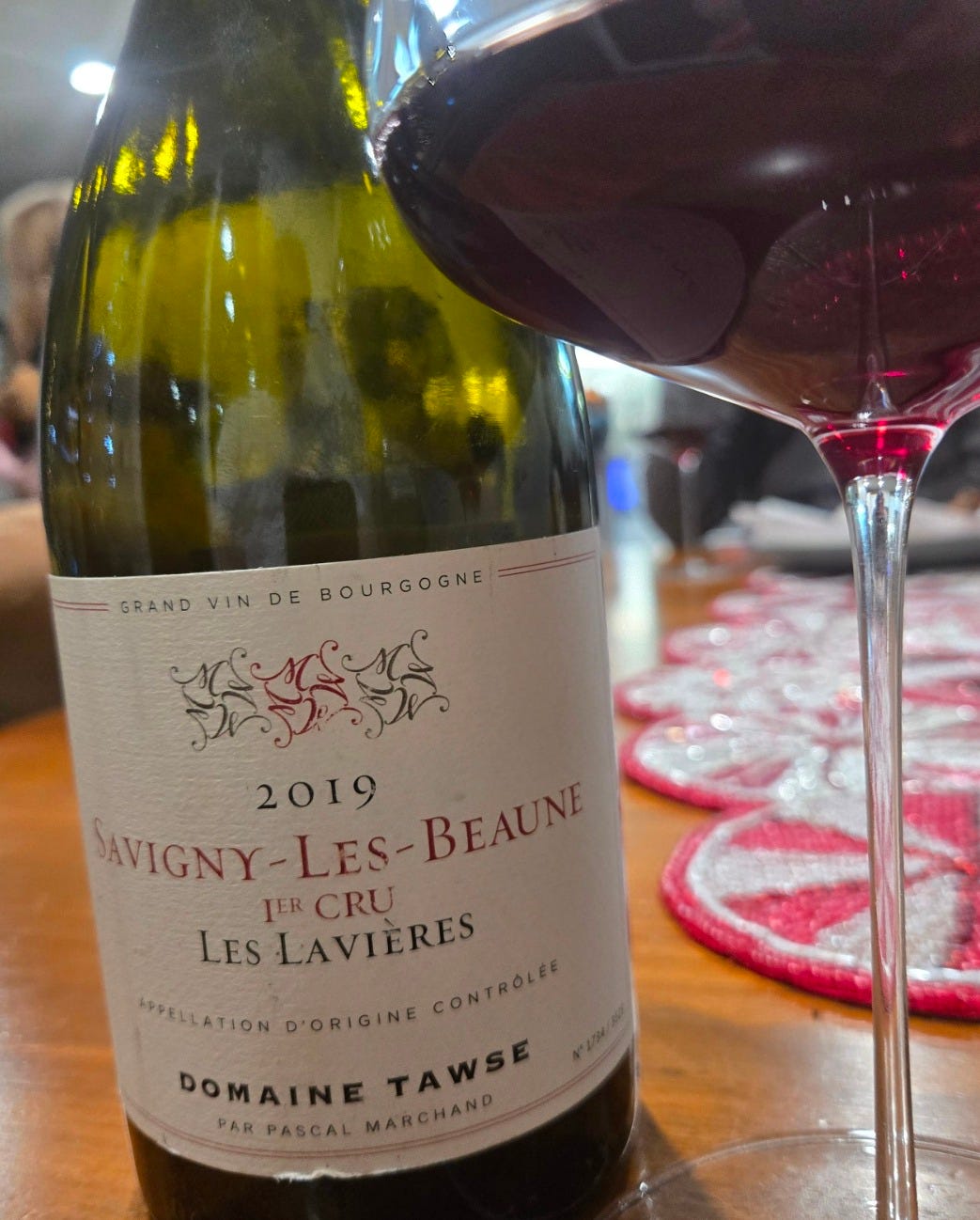 Same dinner, Domaine Tawse Savigny-les-Beaune 1er cru Les Lavières, is a demonstration of where Burgundy is headed, I think. Ripe, rich, and almost new-world-like. Still, that lovely complex Beaune terroir is there, as is the masterful winemaking.